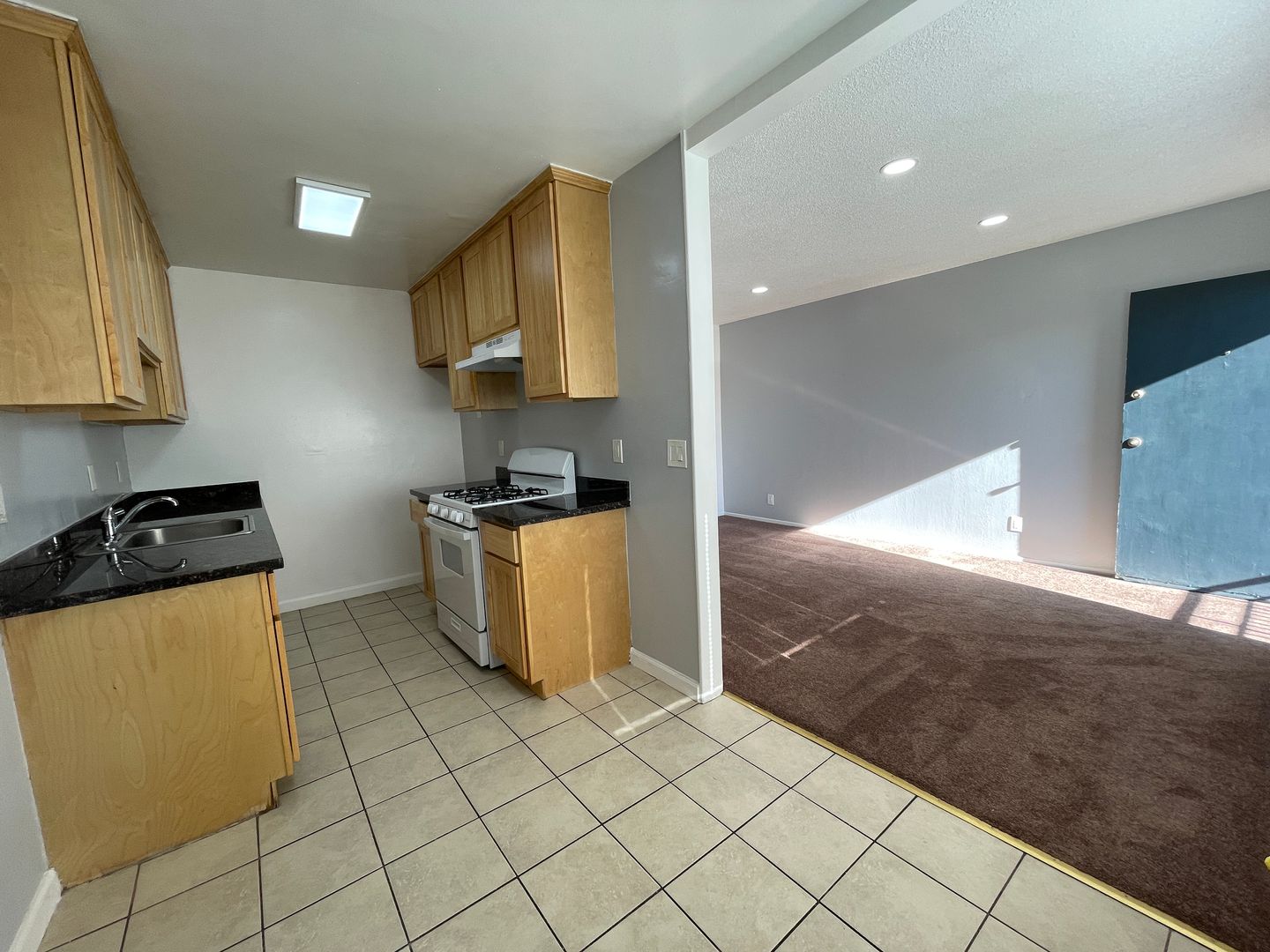Remodeled galley kitchen with newer cabinets & granite counters