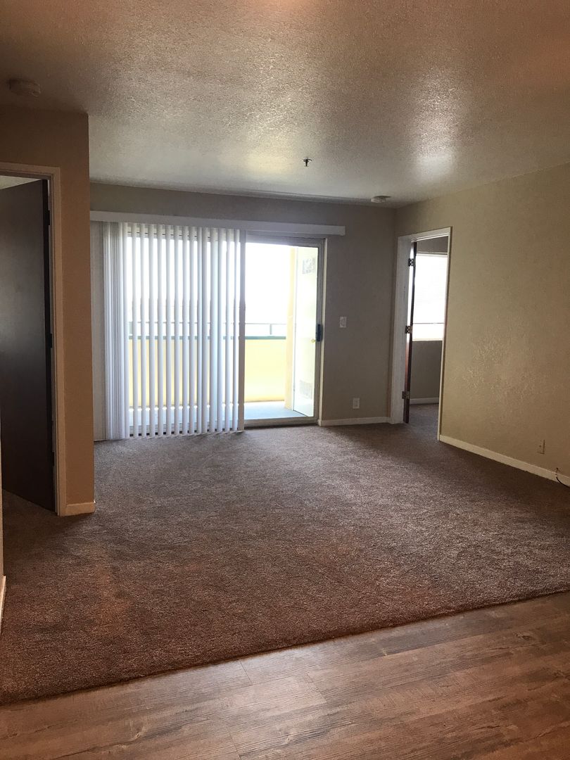 Large living room with sliding glass door to balcony